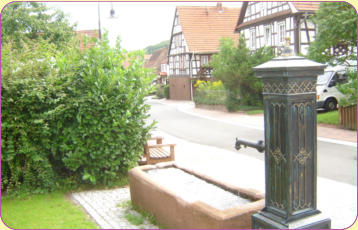 plätschernde Dorfbrunnen, ein kleiner Park mit